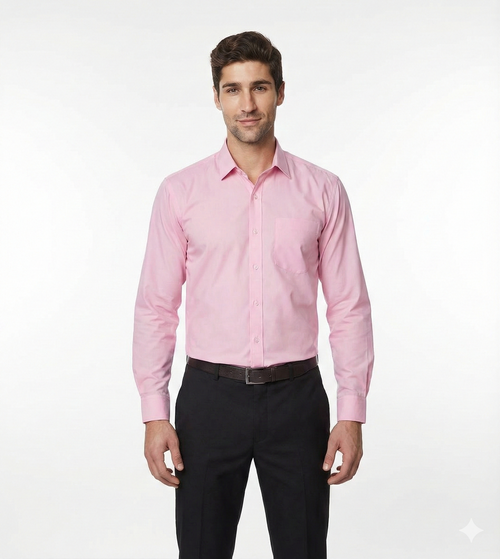 Men Regular Fit Solid Spread Collar Casual Shirt Pink