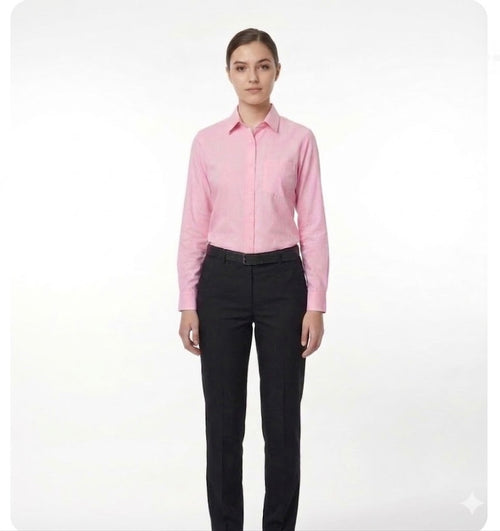 MD College Women's Uniform Set: Regular Fit Solid Pink Shirt & Black Pant Combo